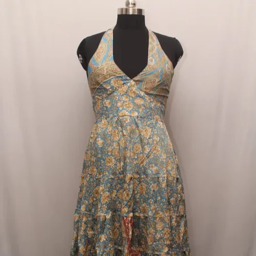 Women’s Backless Beach Dress Boho Maxi V Neck Dress Summer Sundress Vintage Sari Silk Dress (Assorted Colours)