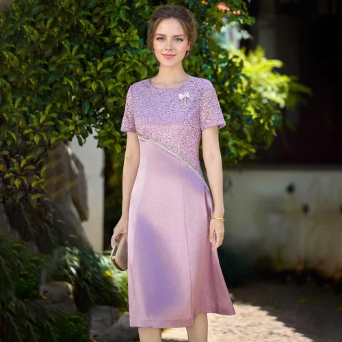 Women’s 4XL A-Line Floral Sequin Sundress Knee-Length Puff Sleeves Crystal Flower Lace Ruffle Natural Plain Dyed for Summer