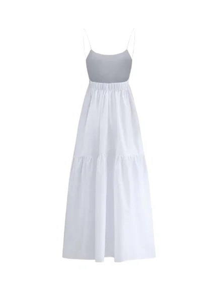 Women’s Casual Long Dress for Spring and Summer Solid Color Backless Sleeveless with Thin Shoulder Strap