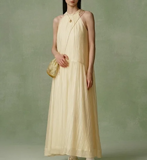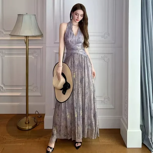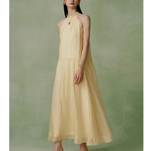 Women’s Eco-Friendly Sleeveless Long Maxi Dress Elegant Slim Sexy Design with Comfortable Breathable Woven Fabric Sweet Style