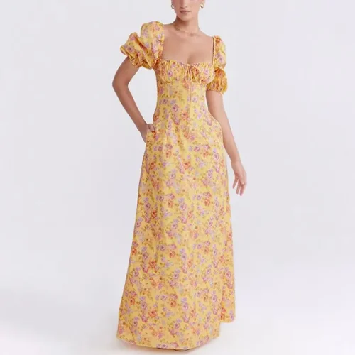 Women’s Set Dress Sexy Ribbed Short Sleeve square Neck tank Top Long Dress