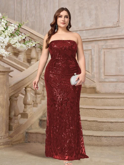 Women’s Sexy Strapless Sleeveless Bodycon Dress Long Slim Fit Sequined Party Evening Dress