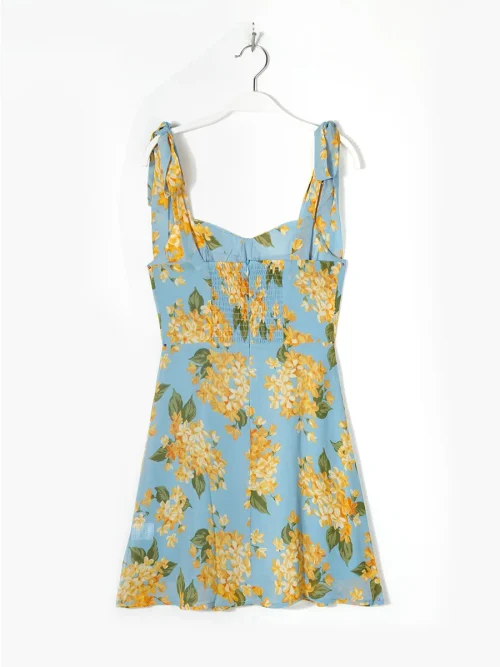 Women’s Summer Floral Print Mini Dress Sleeveless Sweetheart Neck Tie Strap Vacation Beach Style Sundress Chiffon Front