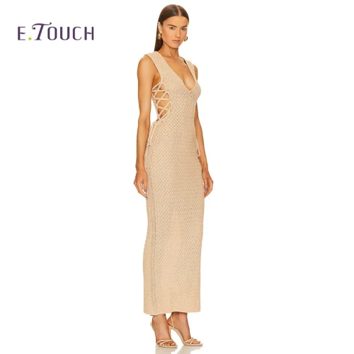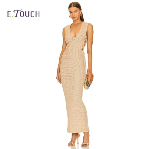 Women’s Summer Knit Dress – New Arrival V-Neck Lace-Up Sleeveless Maxi