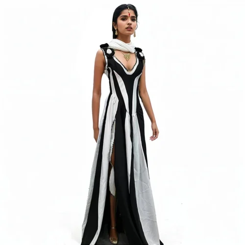 2025 Sexy High Fork Sleeveless Bandage Dress Women Elegant Flower Black &White Stripe Vacation Birthday Party Maxi Dresses
