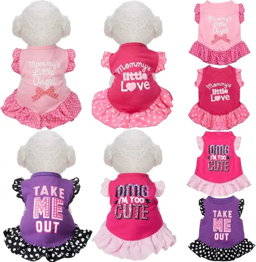 4 Pieces Cute Dog Sundress Printed Princess Puppy Summer Apparel Clothes with Ruffles XS Size for Small Cats and Puppies