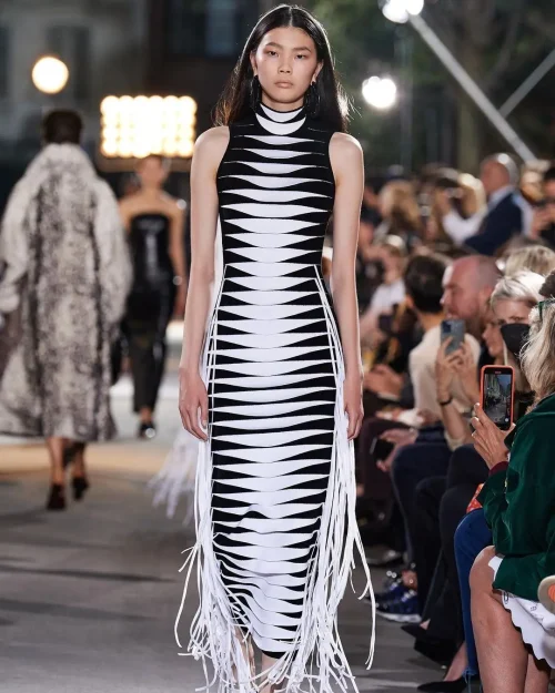 BD2260 Kimshein Womens Summer Clothes Sleeveless Sundress Black and White Stripes With Tassel Maxi Dress Party