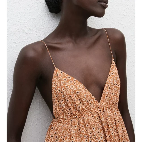 BAOLA Price Women Triangle Tiered Sundress Side Pockets Organic Cotton Poplin Floral Printing Maxi Summer Dress
