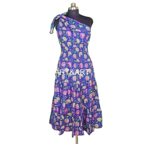 Beautiful Midi Cotton Dress for Women’s Hand Block Printed Indian Wedding Bridesmaid Casual Summer Beach Wear Long Beach Dresses