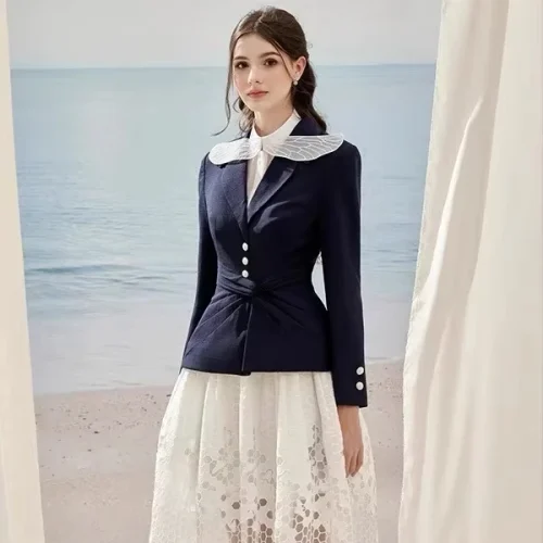 Boutique 2025 Luxury White Elegant Party Evening Dress High Quality Lapel Knit Long Sleeve Casual Dresses