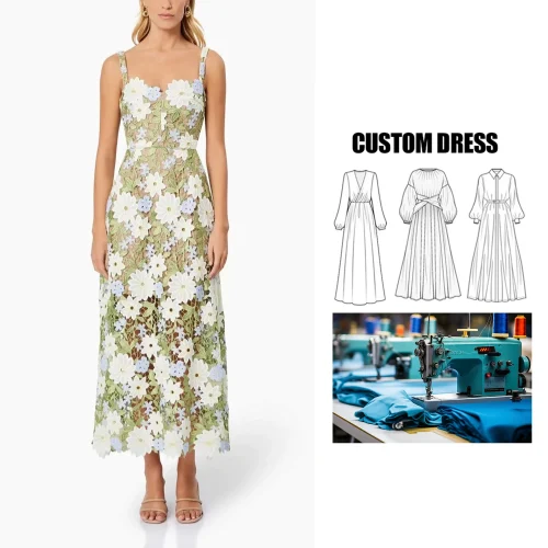 Brand ization Hollow Out Design Floral Print Long Women Cut Flower Decorated Front Floor-Length Suspender Tube Maxi Dress