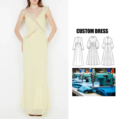 Brand ization Asymmetric Straps Women’s Elegant Boho Chic Ruffle V-Neck Maxi Sundress New Fashion Party Casual Lace Dress