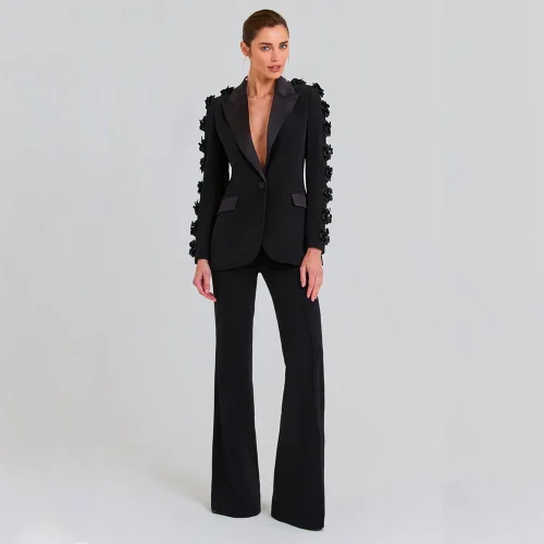Fashionable High-end Suit Decoration Flower Set Women’s European and American Style Party Dress Long Pants Two-piece Set