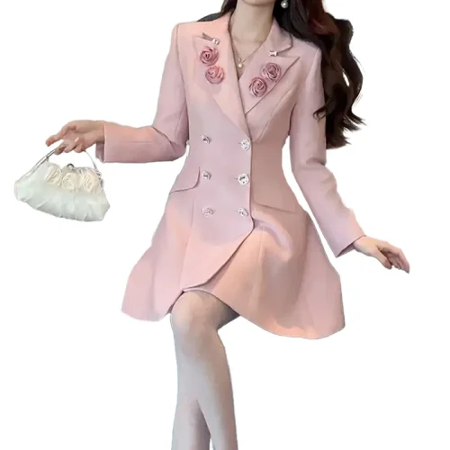 High Quality izable French Pink Satin Blazer for Women New Arrival Breathable Solid Pattern Woven Perfect Sundress