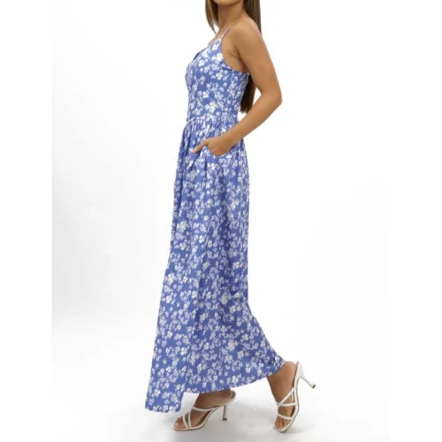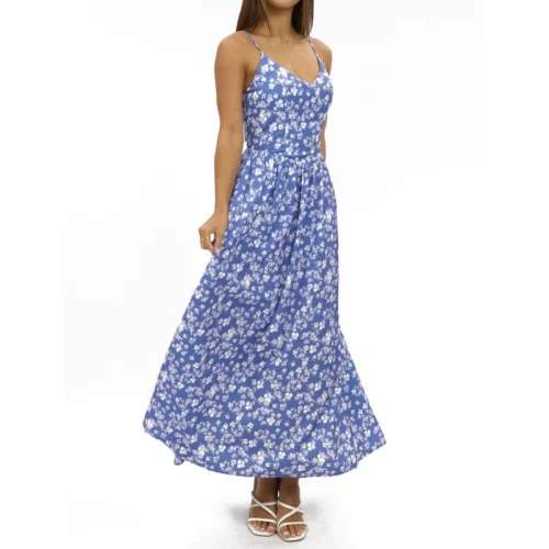 High Quality Strappy Summer Dress Floral Print V-neck Shirred Back Maxi Dress for Women