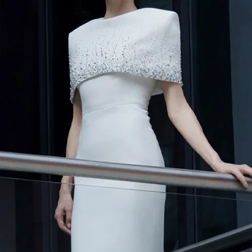 High Quality White Women’s Waist Dress Heavy Industry Shawl Elegant Vintage Vietnamese Style Stylish Sleeveless Casual Dresses