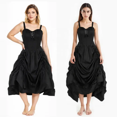 High Waist Ball Skirt Evening Gowns for Women Dress Long Solid Color Dress Gothic Smocked Sundress Summer Dresses 2024