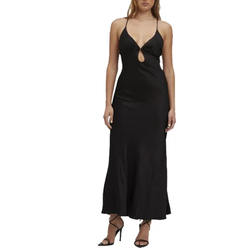 High Quality Women’s Classic Casual Solid Silk Backless Sundress Evening Maxi Dress Ladies Elegant