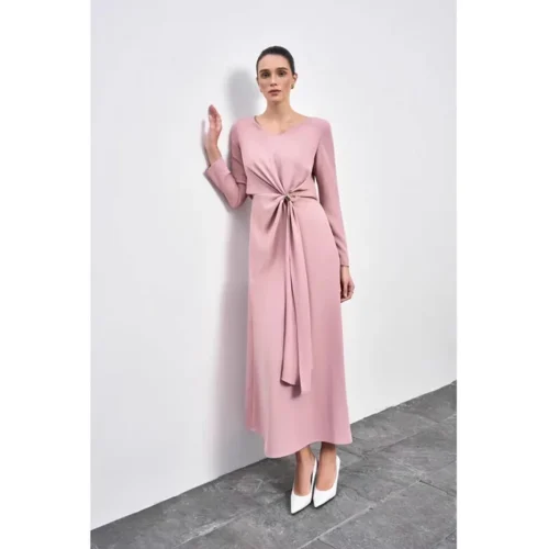 High Quality Vietnam Designer Temperament New Fashion Pleated Casual pink Color Long Dress