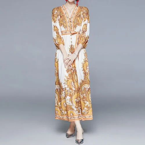 ization Summer Linen Midi Luxury Sundress Abstract Floral Print Woman Casual Long Dress