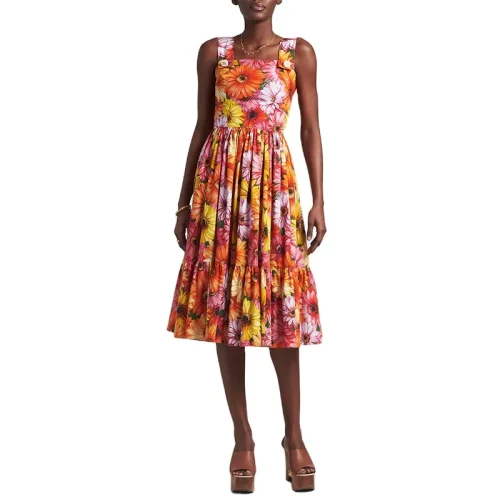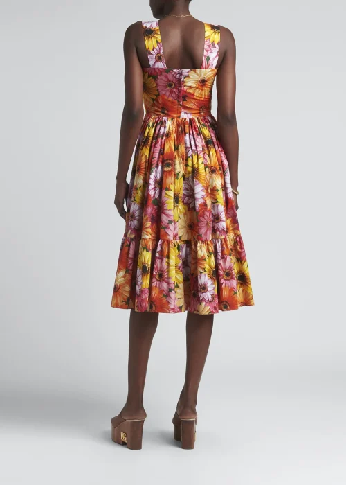 Ladies New Design Summer Sleeveless Floral Print Ruffles Hem Sundress Midi Long Dress for Women