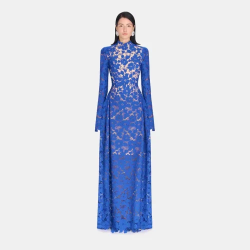 New Style In Stock Handmade Lace Vietnamese Designer Summer Klein Blue Embroidery Dress