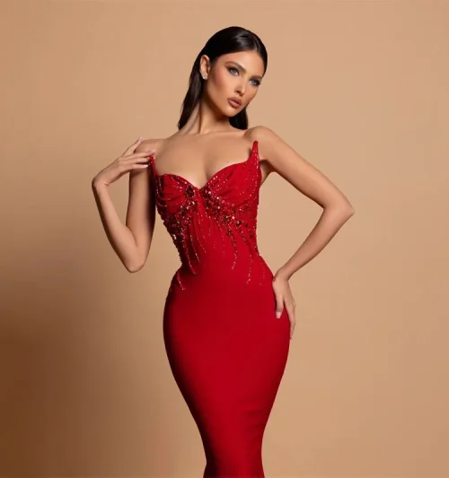 New Rhinestone Decoration Spaghetti Strap Bandage Dress Women Fashion Party Dresses Evening Dresses