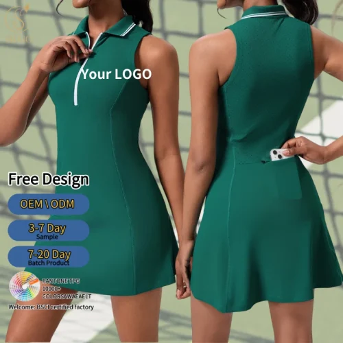 New Summer Active Wear Tennis Golf Sports Skirt Breathable Quickly Dry Sports Basic Gym Wear Tennis Skirt Dresses with Pocket
