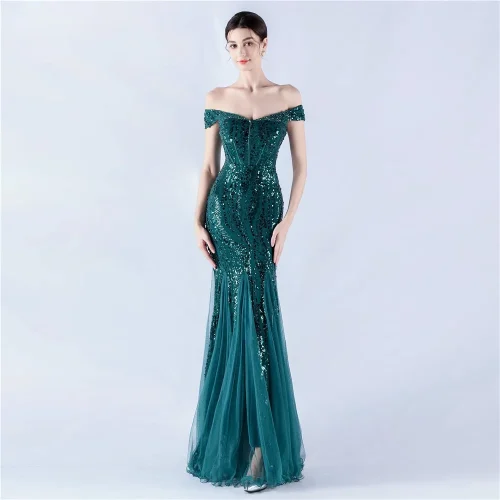 New Style Elegant Women Sequin Long Mermaid Formal Dress One-Shoulder Evening Dress Sexy Slit Strapless Party Dress
