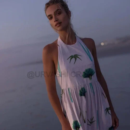 Printed Summer Maxi Length Shoulder Cotton Dress Women’s Flowy Boho Sundress Casual Beach Wear Lightweight & Breathable Dress