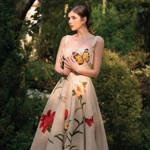 Princess Party Dress Flower Women’s Sun Dress 2023 Summer New 3D Print Retro Waist Strap Dress