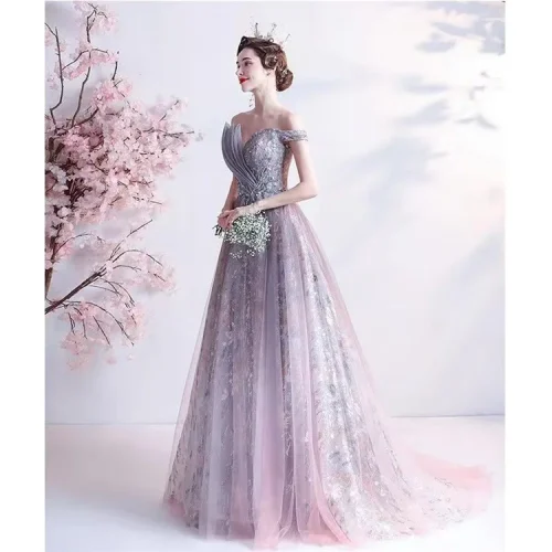 Purple Evening Dress Bridal Wedding and Toast Dress 2023 New Banquet Style Host Dress Summer