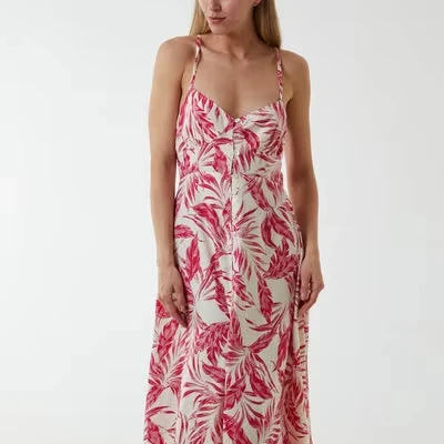 Summer Dresses for Women Casual Sleeveless Floral Printed Lace-up Back Midi Breathable Holiday Beach Flowy Sundresses
