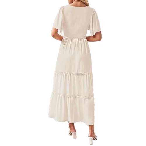Summer Deep V Neck Sundress Mini Backless Ruffled Smocked Short Waist Open Sexy Casual Dresses Womens Clothing Manufacturers
