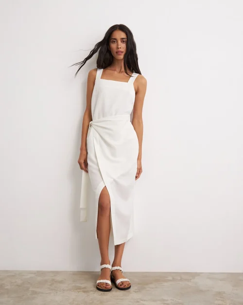 Summer Casual Sleeveless Side Slit Plain Linen Wrap Maxi Long Dress Sundress for Women