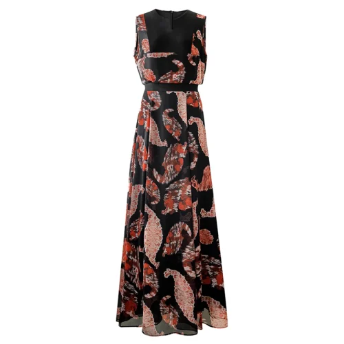 Summer Casual Sundress Sleeveless Floral Printed V-Neck Flowy Beach Party Dresses Evening Dress Woman Dress