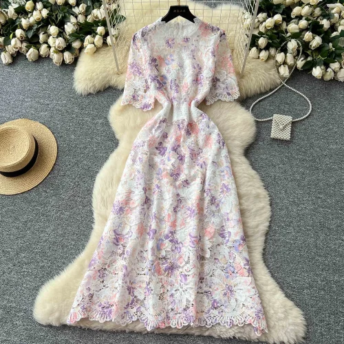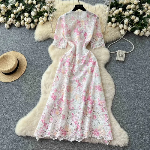 Summer High-end Women’s Vintage Elegant Patchwork Print Waist Evening Dress Fashionable New Design Women