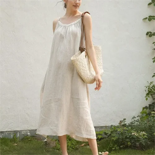 Summer High Quality Slip Womans Retro Casual Mini Cami Linen Blend Shift Dress Sundress