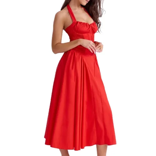 Summer Fashion Women Solid Color Dress Halter Sleeveless Elegant Dresses Sexy a Line Casual Dresses