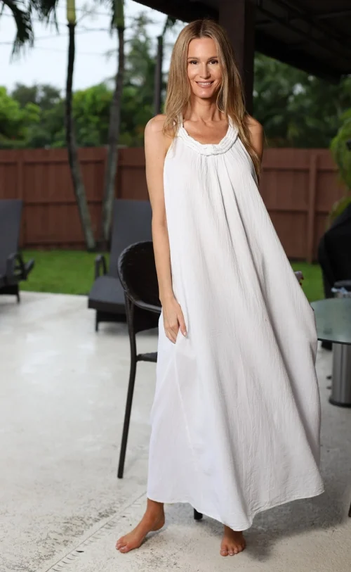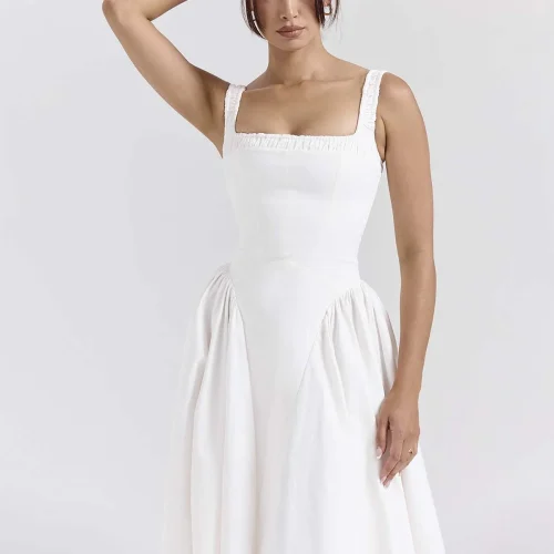 Timeless White Cotton Midi Sundress Perfect for Any Summer Occasion Women Clothing