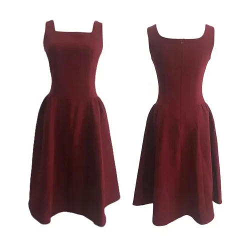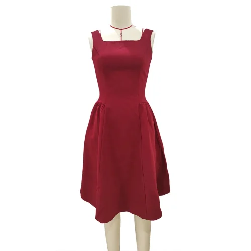 2024 Women’s Red Sundress Slip Dress Square Neck Ladies Tank Dress Sleeveless Smocking Button Front Dress