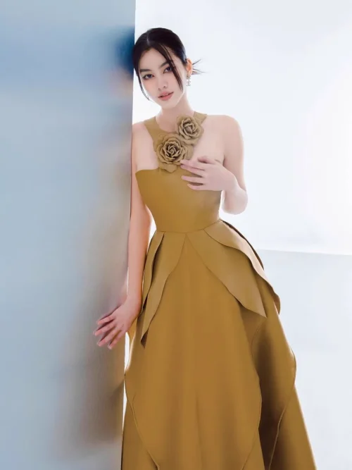 2025 Boutique Fashion Elegant High Quality Women’s Dress Yellow 3D Flower Halter Sleeveless Elegant Long Women’s Dress