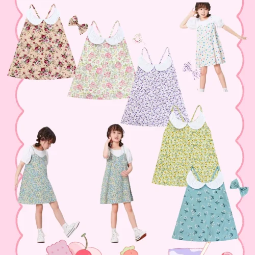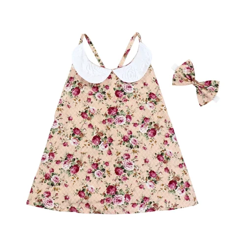 2025 Girls’ Floral Print Sundress Casual Summer Dress Summer Girls Dresses for Children Peter Pan Collar for Children