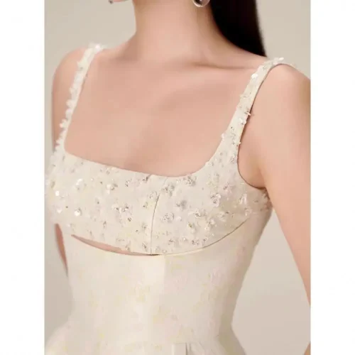 Vietnamese Niche New Temperament Elegant Party Dresses High Waist Stacked Sling Long Dress