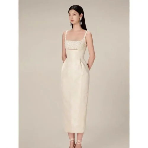 Vietnam Niche Handmade Waist Slimming Long Hip-Wrapped Luxury Women Sex Evening Casual Elegant Party Dress