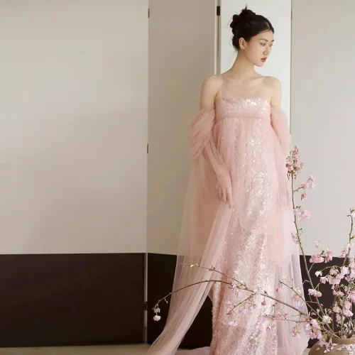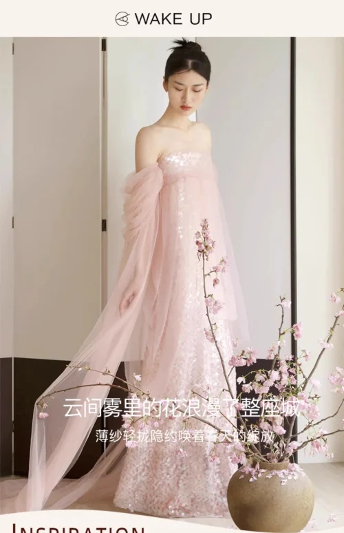 Evening Dress Women’s Tail Dragging Light Luxury Suspender fairy Style Long Engagement Dress With Dress