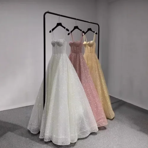 Evening Dresses Sparking Sequins Princess Skirt Sexy Sleeveless Backless Elegant Birthday Party Host Dress Shiny