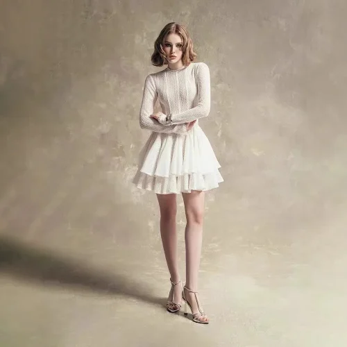 Fashion Luxury Long Sleeve Lace Pleated Party Short Women’s Dresses High Waist Slim Party Casual Dress