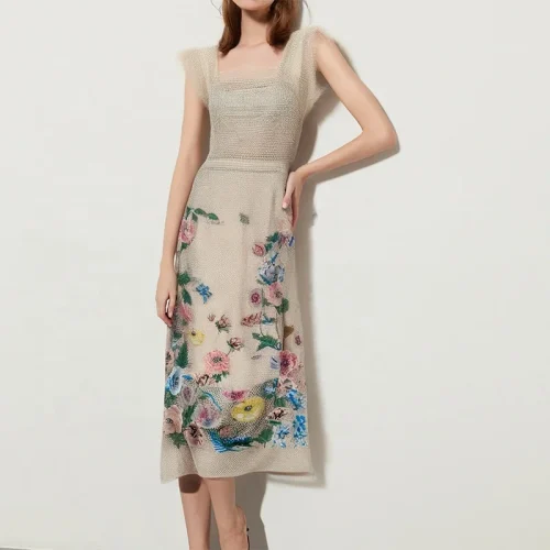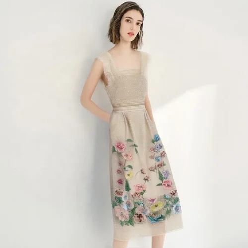 Spot Heavy Industry Colorful Lace Formal Elegant Floral Embroidery Designer Mesh Celebrity Dress