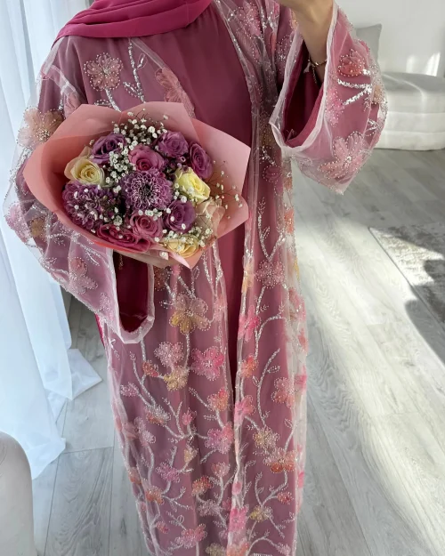 Sharut Abaya /ODM Dubai Abaya Luxury EID Islamic Kimono Muslim Women Dress 3D Textured Floral Modest Gorgeous Abaya